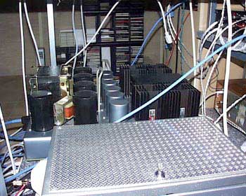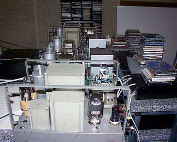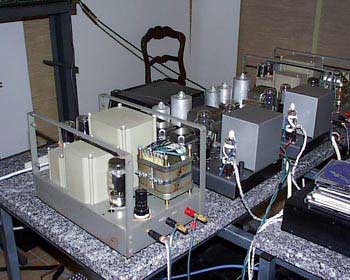 L'aigu est confié à un petit ampli dont le tube de puissance est une KT88 montée en triode. L'ensemble est réalisé à la fçaon "militaire". Pas très raffiné sur le plan de l'esthétique mais diablement robuste!!! Encore une fois les câbles de modulation sont de type Kimber Argent